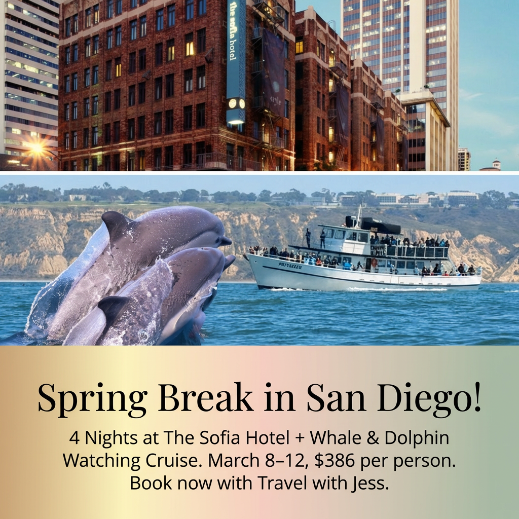 Escape to sunny San Diego with this incredible package! Enjoy 4 nights at The Sofia Hotel in the heart of downtown, plus an unforgettable Whale & Dolphin Watching Cruise.